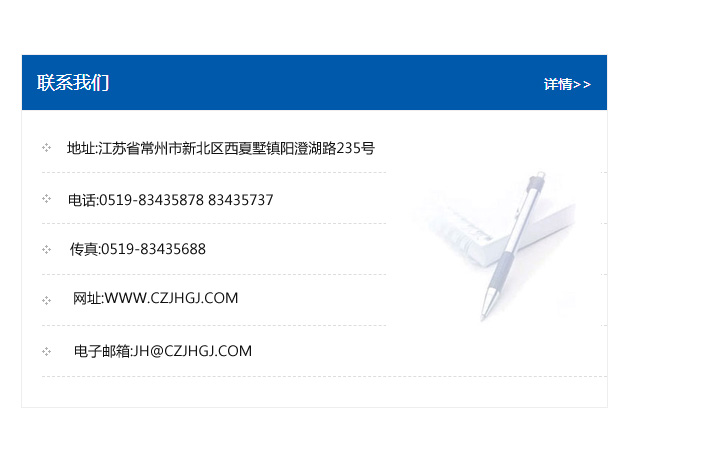 地址:常州市新北區友邦商務大廈1幢16、17層  電話:0519-85101652  傳真:0519-85112595  郵編:213022  網址:www.cz-jiayue_cn.njbiaiyue.com  郵箱:xiajifengaa@163.com
